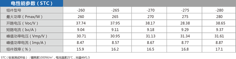 多晶280W單玻組件260~280W